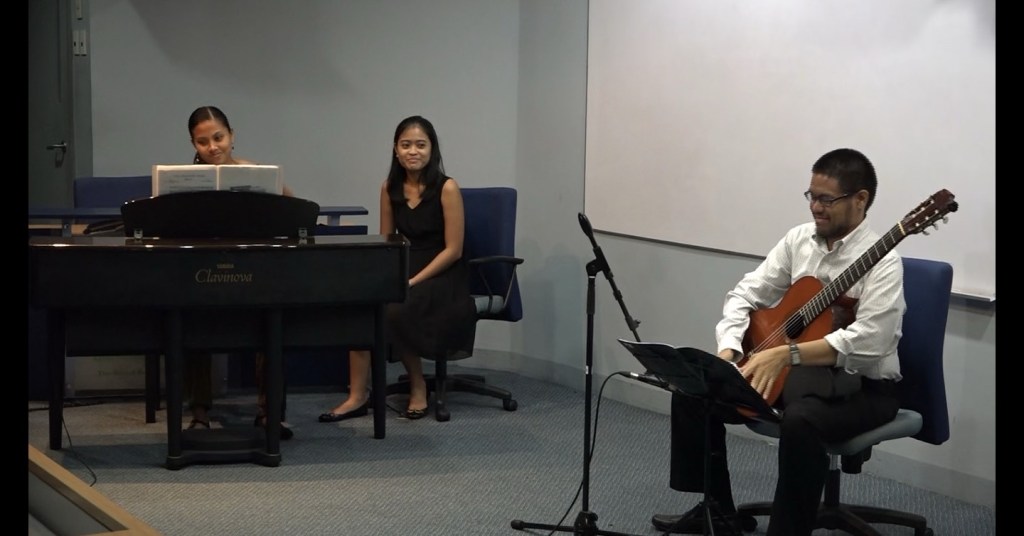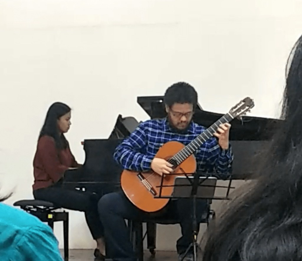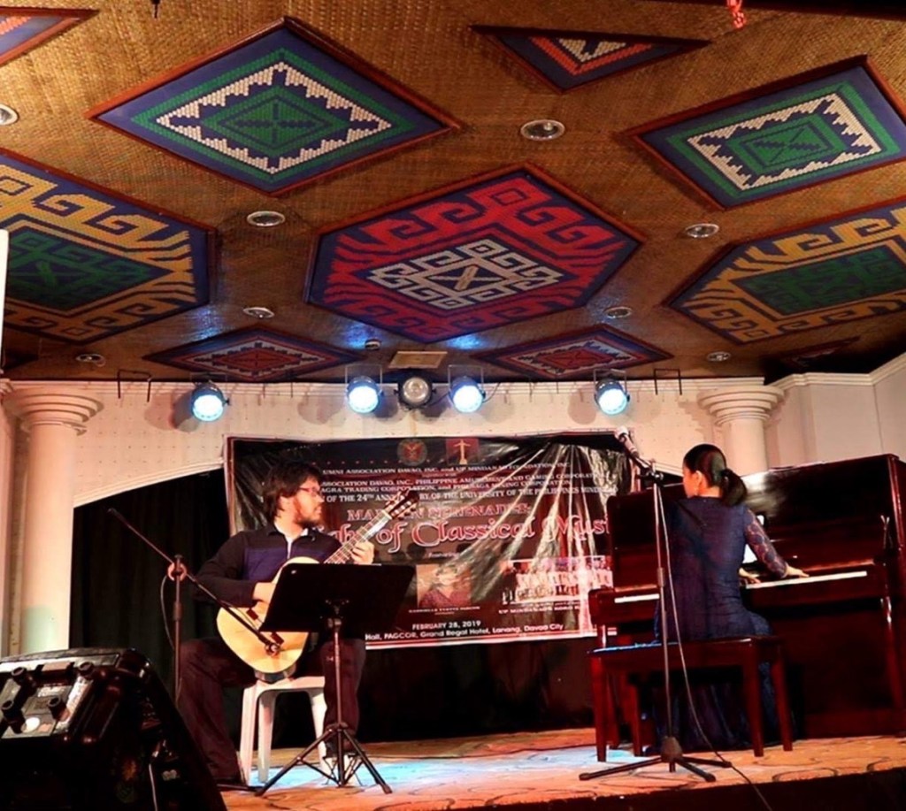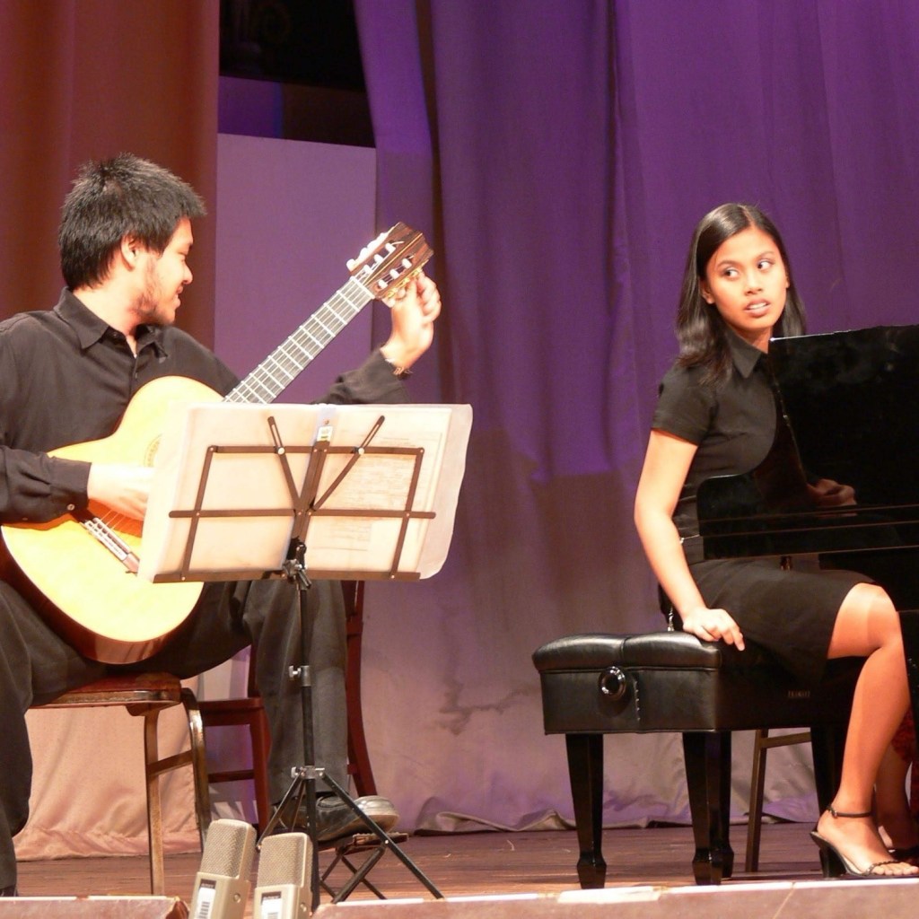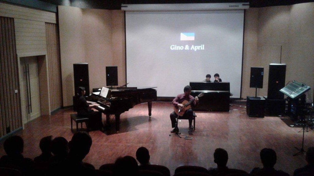 October 30, 2019 – Short performance at Maria Montessori Children’s School in Merville, ParañaqueJune 28, 2019 – Gonzalo’s 2nd PhD recital at PWUMay 2019 – Concert at the Southeast Asia Guitar Festival and Performance Awards, IndonesiaMarch 31, 2019 – Ariel Ramirez’s Misa Criolla at the National Arts Center, Mt. Makiling, LagunaFebruary 28, 2019 – Concert at Davao CityNovember 2018 – Demo-performance during Manuel Caceres’ guitar-making workshop at Silay City during the International Rondalla Festival (we were not formally part of the program)May 2018 – Short informal performance for Silpakorn University guitar studentsMay 2018 – Afternoon concert at the Vietnam National Academy of Music May 2018- Concert at Ritual MakatiApril 2018 – Concert at the Southeast Asia Guitar Festival and Performance Awards, ThailandFebruary 27, 2018 – Chamber music performance of April Misa’s transcription of Hiroko Kokunu’s arrangement of “Norwegian Wood” during the the “Haruki Murakami Festival – Experience His Works through Music, Films, and Talks” at the Ateneo de Manila UniversityOctober 2017 – Jury duty at “That’s My Teacher” singing competition at Cultural Center of LagunaApril 2017 – Silpakorn International Guitar Festival, ThailandAugust 2016 – Gonzalo’s 1st PhD recital at the Manila Guitar FestAugust 2014 – Philippine Women’s University Guitar FestivalDecember 2013 – Recital at Library@Esplanade, SingaporeFebruary 9, 2013 – Concert at Shariff Kabunsuan Cultural Complex, Cotabato CityAugust 26, 2008 – Recital at the Philippine Women’s UniversityMay 12, 2008 – Recital at St. Scholastica’s College ManilaDecember 20, 2007 – One of the Classical guitar nights at ConspiracyFebruary 10, 2007 – Gonzalo’s graduation recital at UPOctober 24, 2006 – Gonzalo’s chamber music recital at UPMarch 12, 2005 – Gonzalo’s junior recital at UP